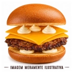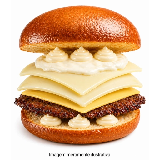 Pão, hambúrguer artesanal 110g, mussarela, queijo prato, cheddar e requeijão cremoso.